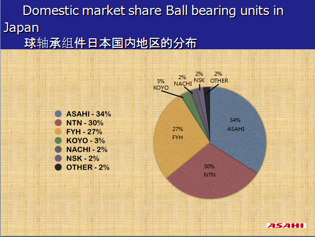 1938年旭精工株式会社设立,开始在日本首家生产及销售连座滚珠轴承,总部设于日本大阪府堺市。经过近一个世纪的创新与突破,现已成为世界顶尖带座外球面轴承生产商之一,涵盖了标准系列,不锈钢系列,铝合金系列,银亮锌合金压铸系列,塑料系列,高温水中用系列等带座外球面轴承应用到的各种场合,旗下产品还涉及关节轴承,气动离合器制动器,直线导轨等。ASAHI产品服务产业包含农业关联,面包食品加工,饮料酒水等制造,杂粮食品加工,输送机械,乳品制品加工,保健设备,健身器材,冷冻食品,果蔬类机械,包装机械,纸业加工,家禽关联,粉状与散装物料的加工,印刷设备,肉类加工,木工机械,海鲜食品,纺织品关联,废水处理等。因为专业与产品本身的可靠性,ASAHI现已成为日本第一大带座外球面轴承生产商,世界带座轴承的顶级品牌。